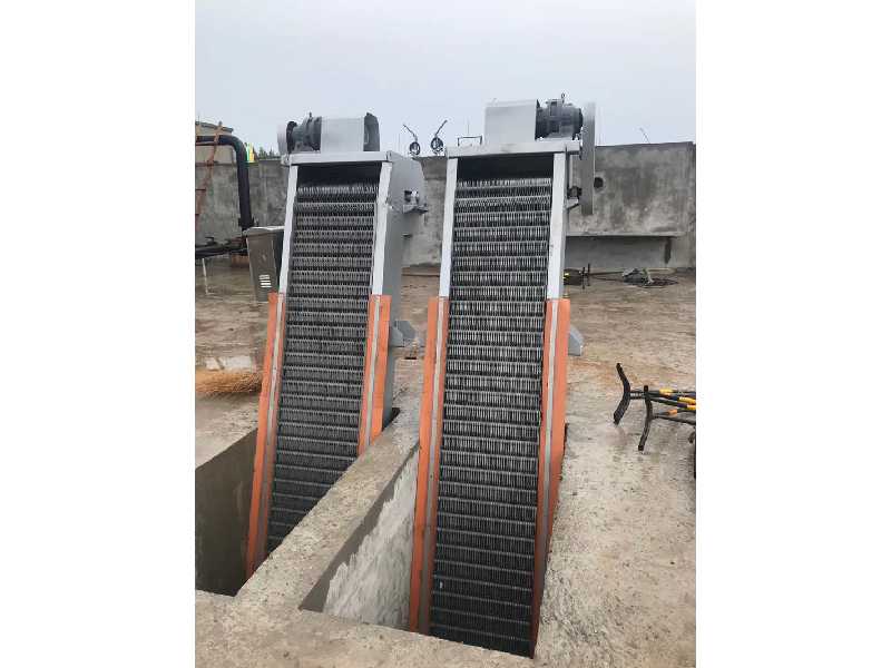 回轉式格棚連續(xù)旋轉運動,把齒將污水中固體暴浮物截留,當截留物輸送到設備上部時,犯齒改變運動方向,固體雜物行落下,粘在把齒上的雜物依靠清污機構的橡膠劇反向運轉將其清除干凈。過鼓時,彈置下壓,接近板靠近接近開關,使電停止運轉。